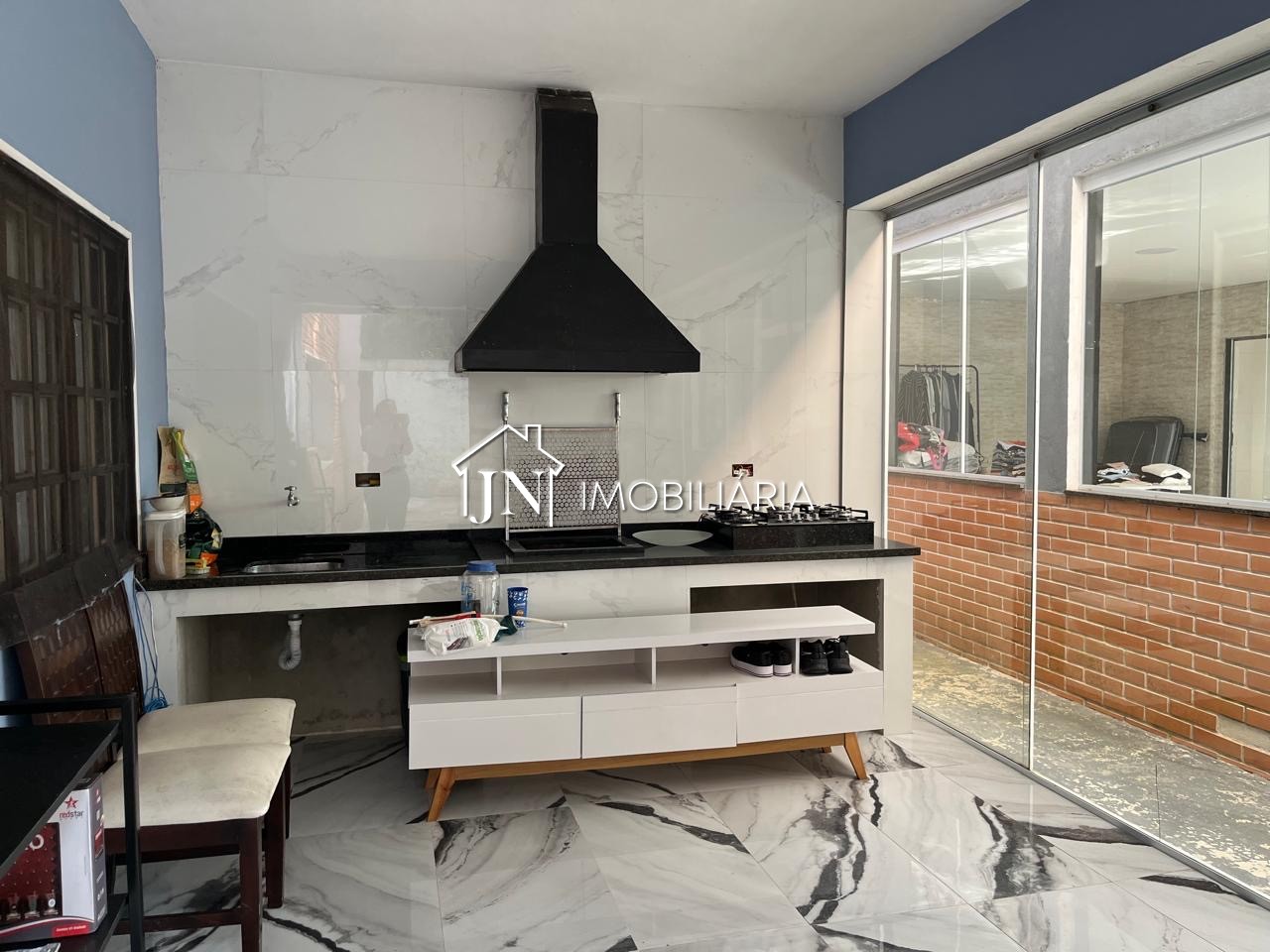 Também conta com área gourmet, duas churrasqueira e salão de festa.